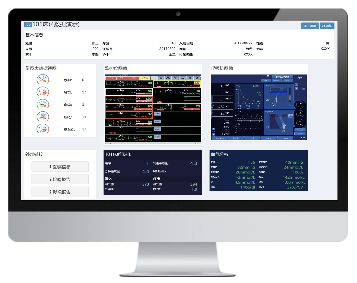 實(shí)時(shí)呈現(xiàn)病人體征參數(shù)、變化趨勢,診療設(shè)備參數(shù),同時(shí)接入醫(yī)囑、檢驗(yàn)結(jié)果數(shù)據(jù),一體化呈現(xiàn)存儲和回溯,方便醫(yī)護(hù)急救、會診、查房